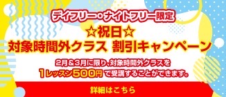 ☆祝日☆対象時間外クラス 割引キャンペーン!