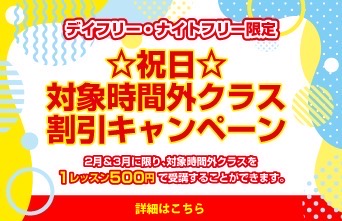 ☆祝日☆対象時間外クラス 割引キャンペーン!